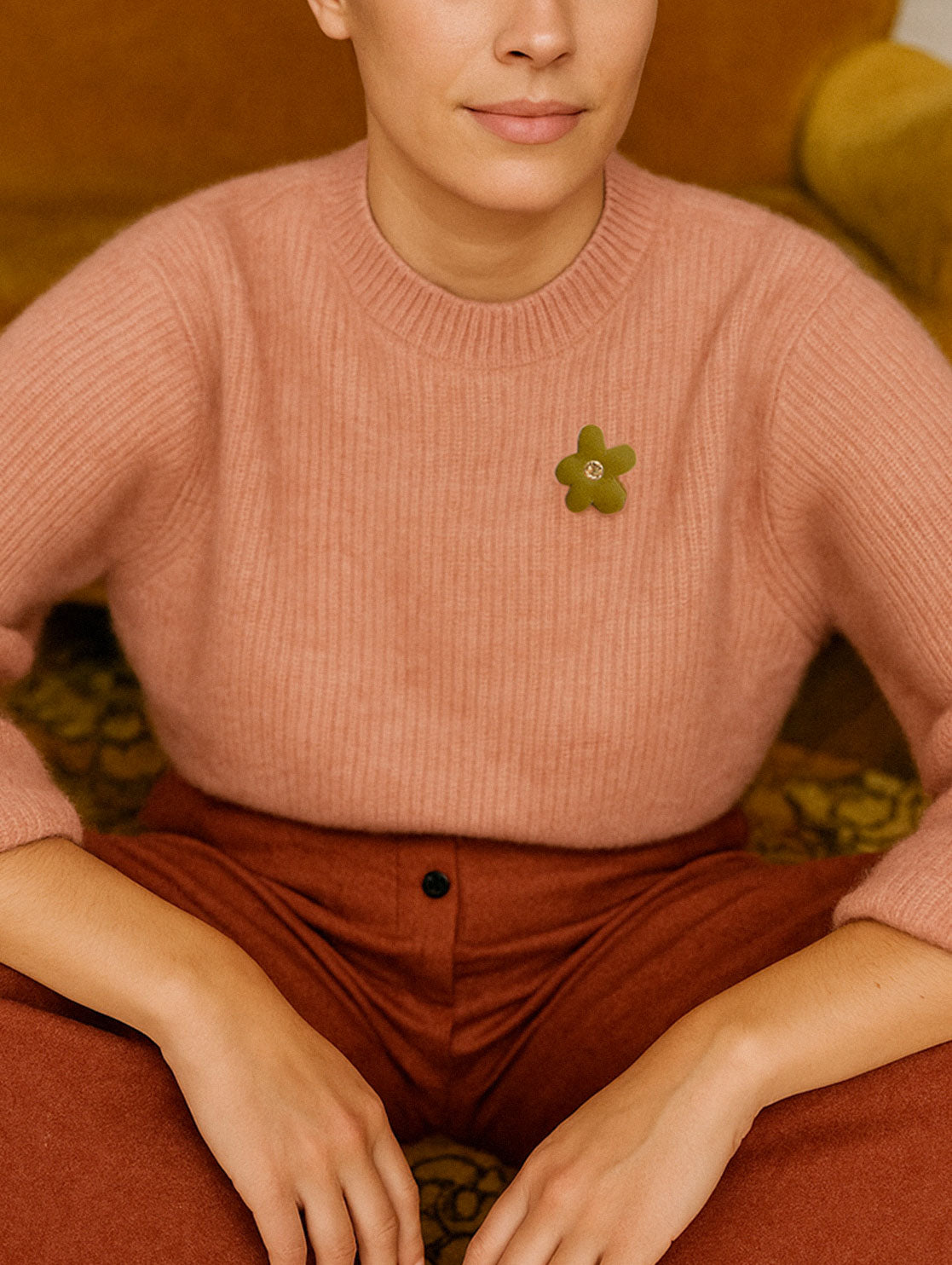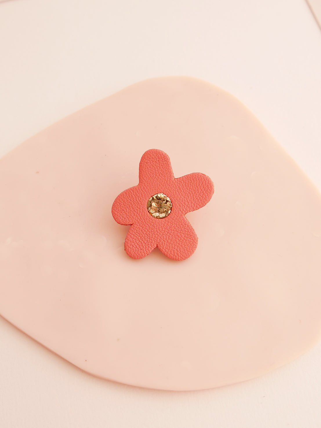 Cet adorable pin's fleur fera pétiller vos tenues. C'est un intemporel qui se porte aussi bien l'hiver sur un gros pull que l'été sur un petit gilet fin.