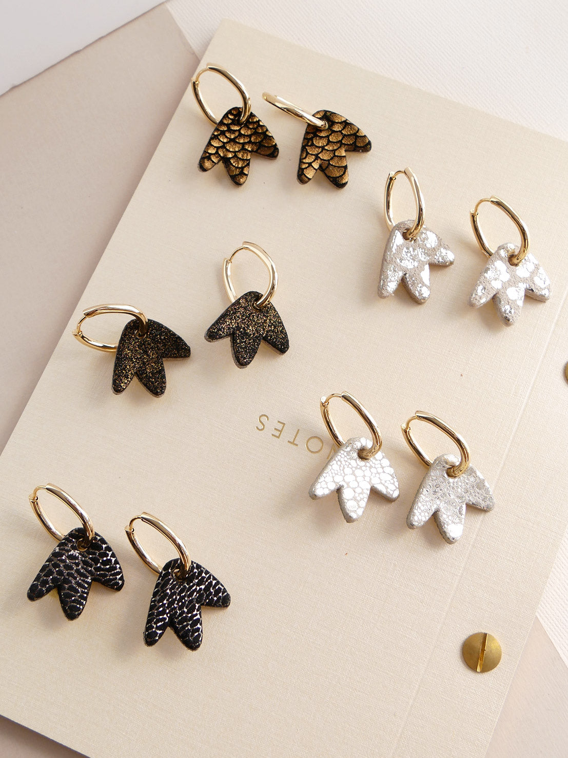 Ces boucles sont personnalisables (dans la limite du stock de cuir disponibles à l'atelier) donc parfaites pour créer un ensemble avec une de vos tenues. N'hésitez pas à contacter L'indiscrète.