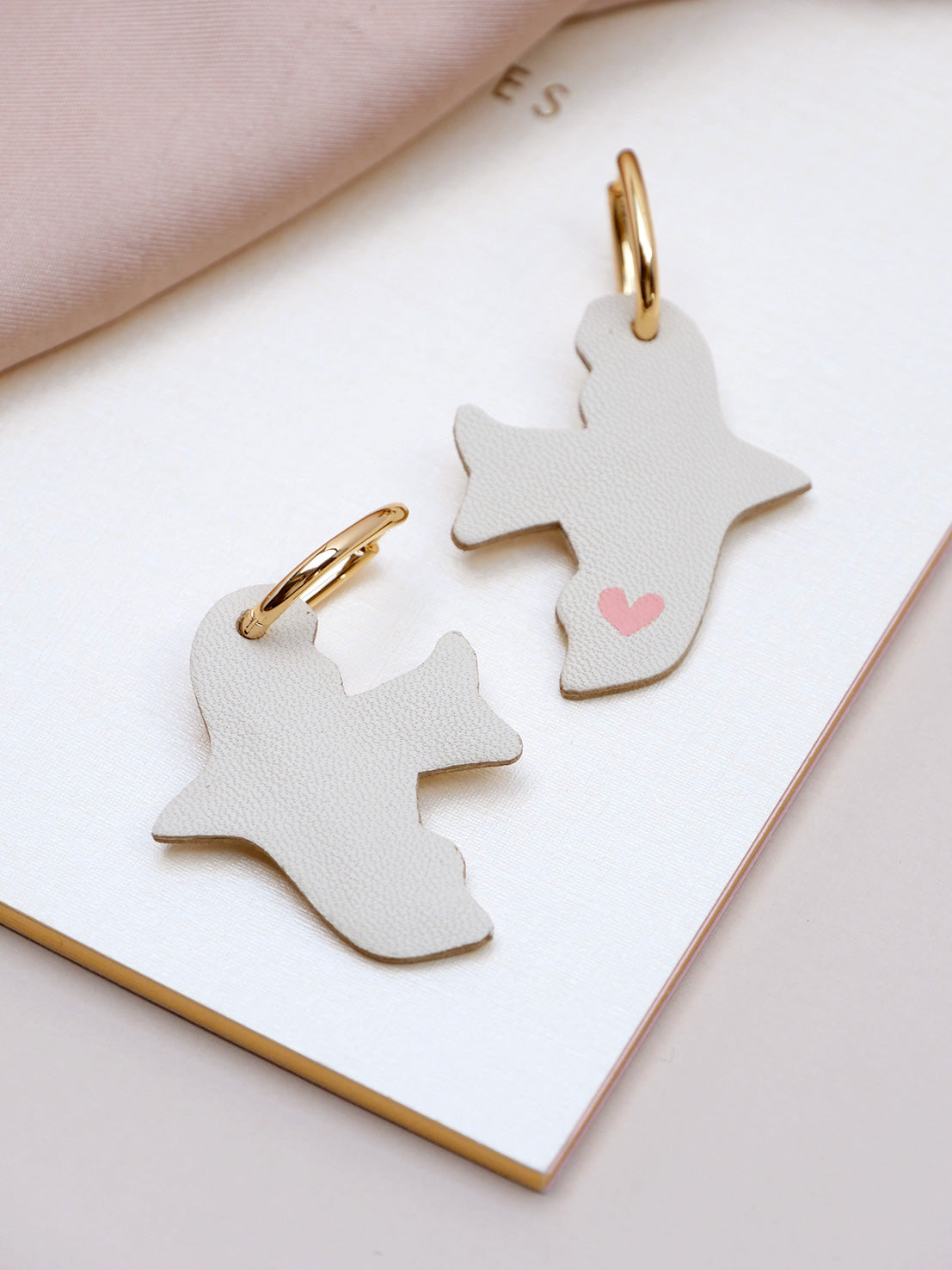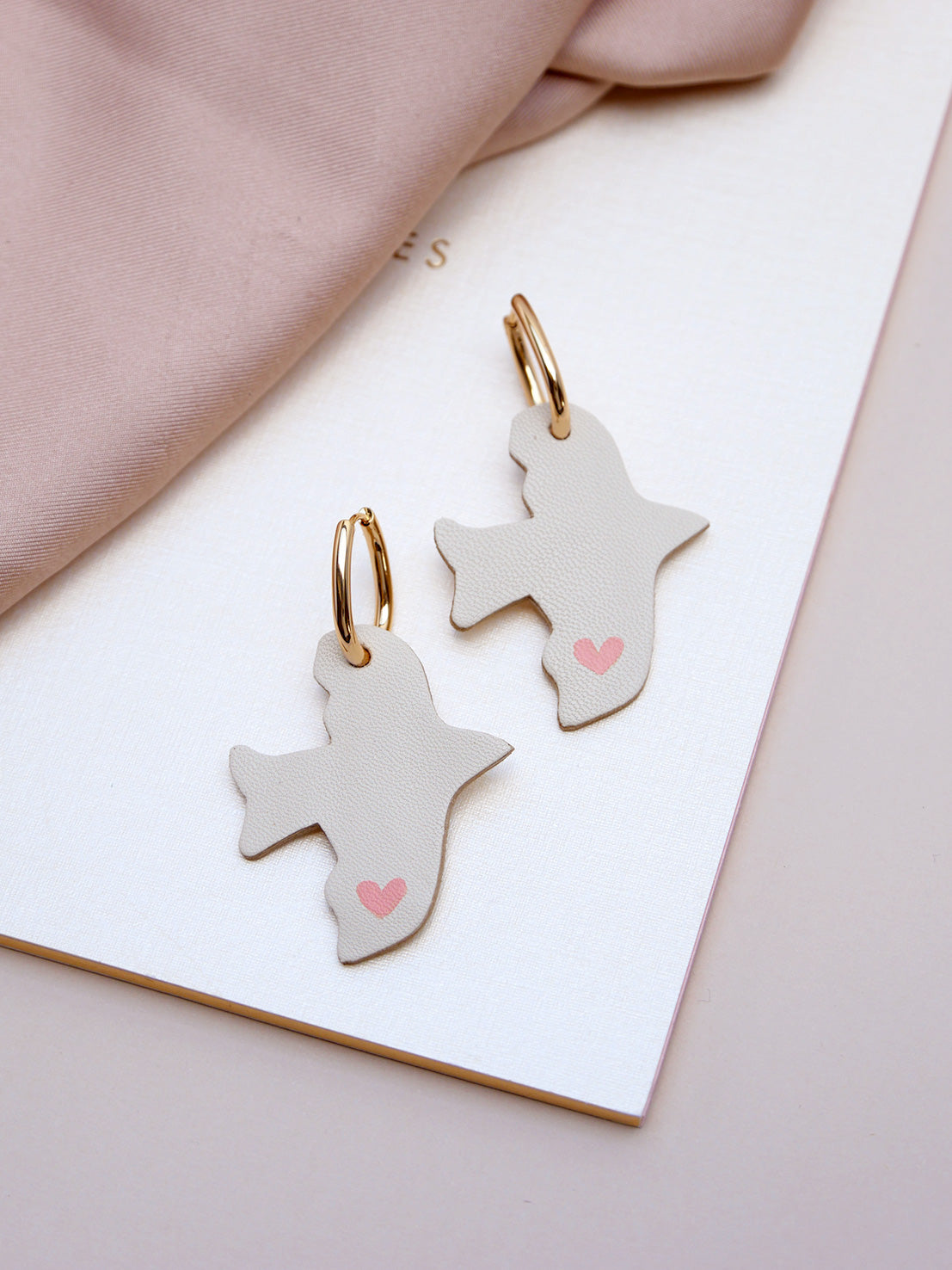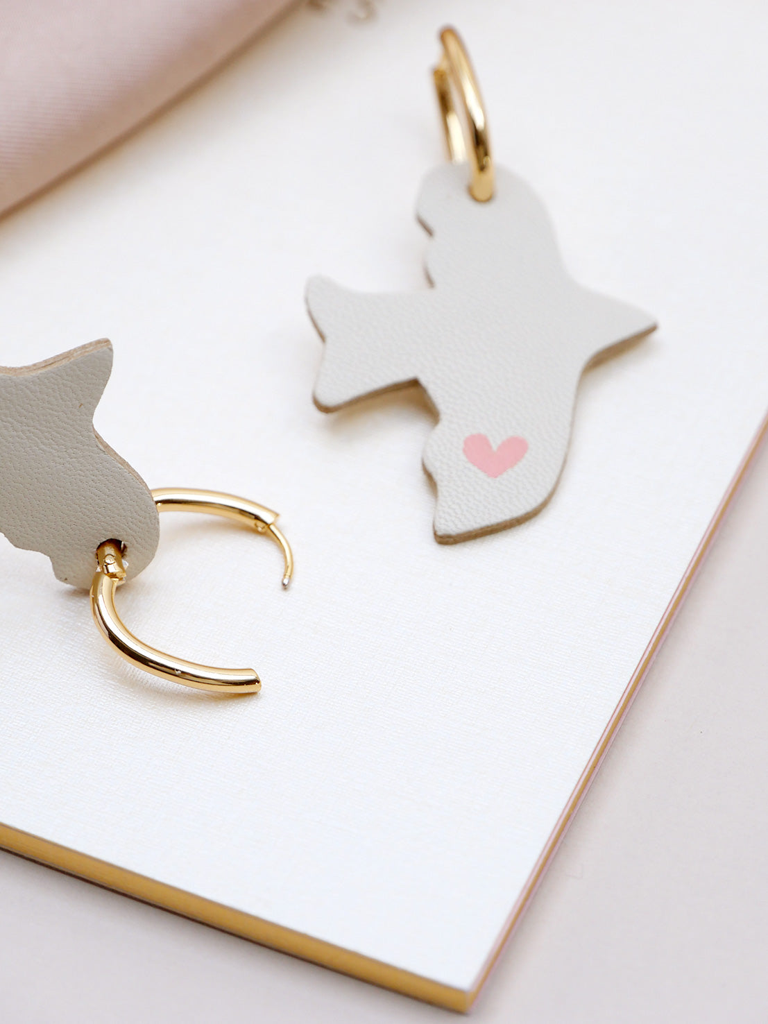 Essaouira - Boucles d'oreilles oiseau en cuir blanc et or