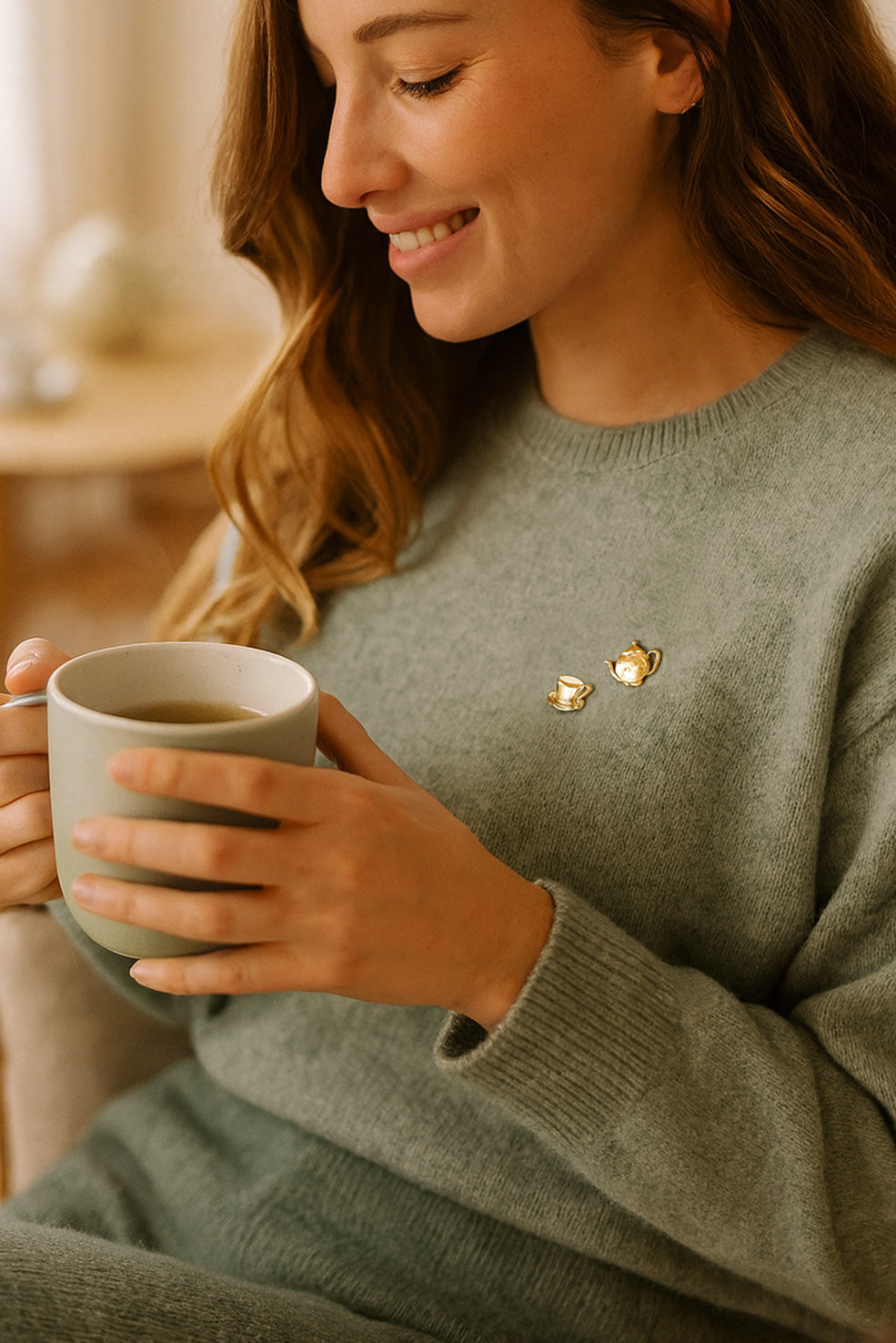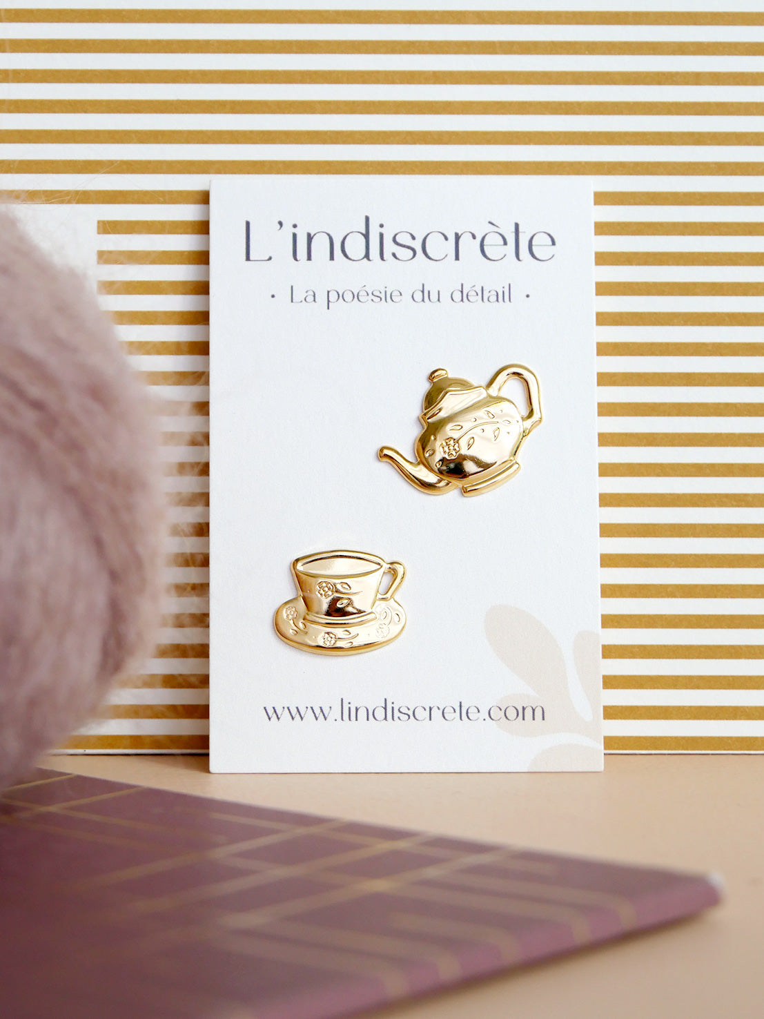 Tea time, deux petits pin’s comme une pause délicate à emporter partout. Dorés et raffinés, ce duo célèbre le charme intemporel du thé.